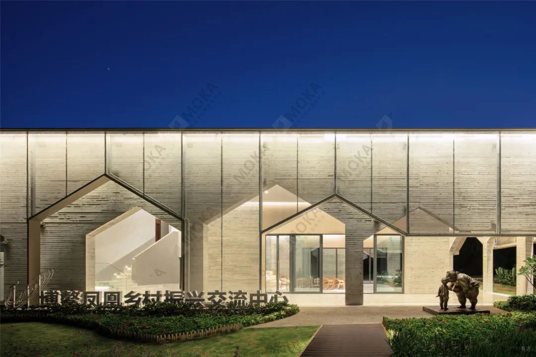 博鳌乡村振兴交流中心项目中应用到了法拉利预应力聚酯膜View 381,具有28%的开孔率,使得表皮既可以像百叶窗一样,遮挡70%以上的烈日直射,遮阳隔热又透风,但在光线作用下,它又能形成几乎完全通透的透景效果。