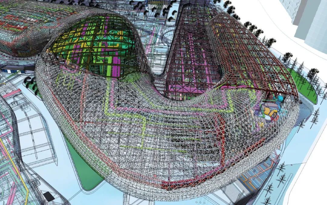 传统的二维图纸已经无法准确表达复杂的三维空间,特别是面对复杂形体的建筑,建筑师是无法凭借一般的工程经验来确定其合理性,这就需要结构工程师在设计初期就参与进来,在搭建结构体系时引入参数化设计,可以对每个节点的位置进行精确定位,并对施工进程进行监控。