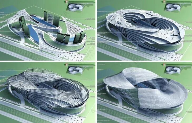 让这些雕塑感强烈的非线性作品不仅仅是流于表面的美感,而是追求高效率的功能性,这才是参数化设计真正发挥作用的地方,允许设计沿着不同的定量参数变化。