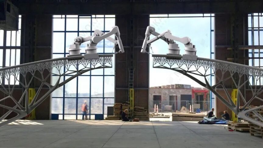 通过数字来定义形式,可以创造出自由度很高的结构体系。借助3D打印技术,让复杂的结构形式在小尺寸和大尺寸上都取得了进步。机器人的现成3D打印带来了结构领域的新发展,设计师不需要再考虑如何简化几何形式以满足工艺要求,取而代之的是用更先进的技术将美学和力学融为一体。
