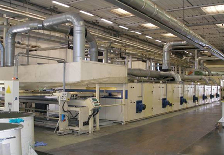 cm的高密度聚酯织物。此外,创新的涂层技术允许在织物的每一侧上涂覆4种PVC涂层,每层2种,并不断控制所用的PVC量。通过自动管理过程参数的电子设备使这种控制成为可能。与涂层一起,在同一行中,可以在织物的一侧上印刷双色。最后,还根据涂层和印刷,安装了精加工设备,该设备可以用双重上漆处理组成的材料,一个在外部,一个在内部。所有的涂层阶段