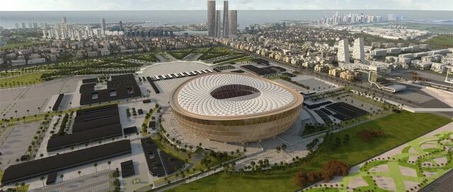 实景图近日,英国Foster + Partners(福斯特)建筑事务所公布了其最新力作——位于卡塔尔的金色卢赛尔(Lusail)体育场的图片。卢赛尔体育场为20