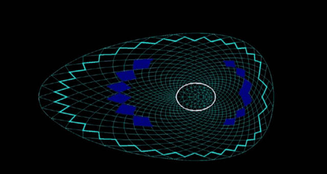 (3)网格形式方面:于家堡单层网壳的网格是由从顶部延伸出的36组顺时针和逆时针的空间螺旋线交叉编织而成。网格为不规则的空间四边形,四个节点不在同一平面内,为非正交交叉梁结构体系,且各个网格的形状、大小无一相同。