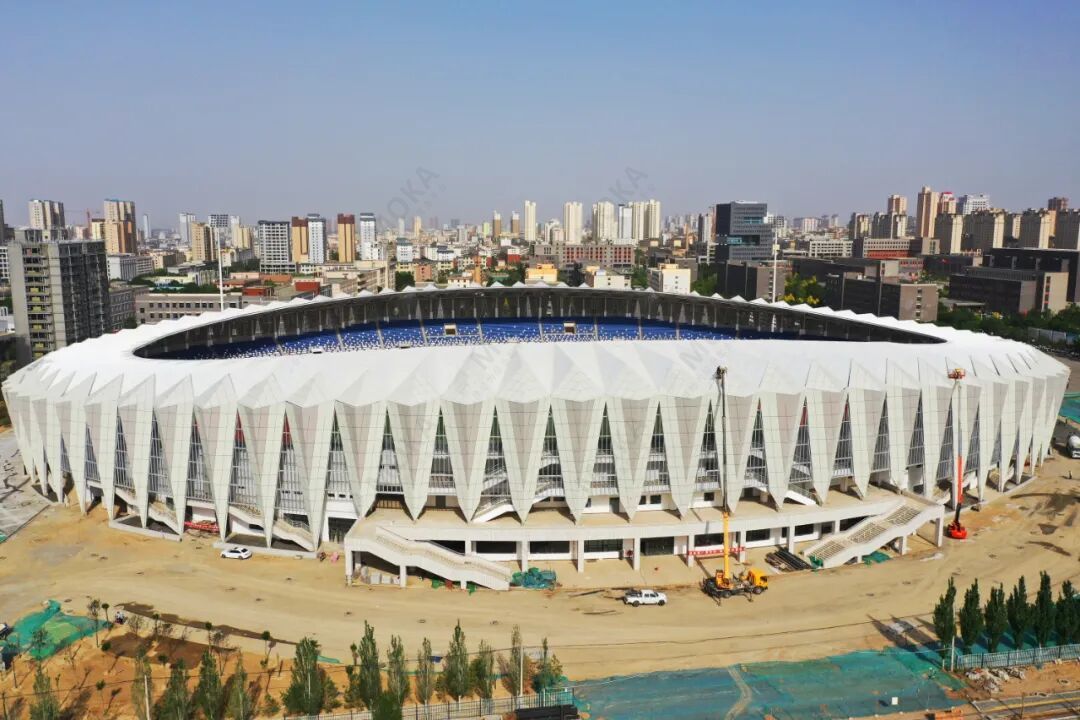 武威市体育场,为乙级中型体育场,是校地共建市列重大工程建设项目。占地面积34401平方米,可容纳2.2万人。目前,该项目的土建工程、钢结构工程、灯塔工程、膜结构工程、看台座椅工程、运动场人工草坪足球场工程已完成,塑胶跑道铺设工程及室外配套工程正在有序推进中。