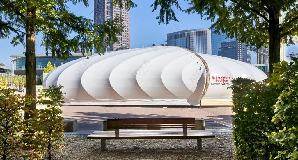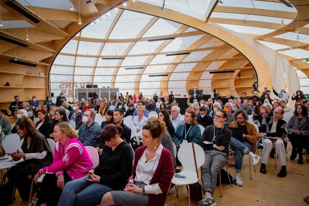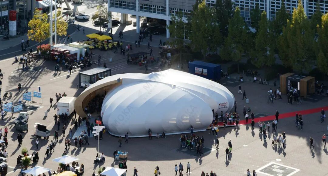 法兰克福展馆由德国施耐德+舒马赫建筑师事务所和Bollinger+Grohmann结构事务所合作完成,首次出现于2018年的第70届法兰克福书展,并于2019年重建。在受疫情影响而停办了两届之后,法兰克福书展于今年10月重新举办,并再次重建了该展馆。