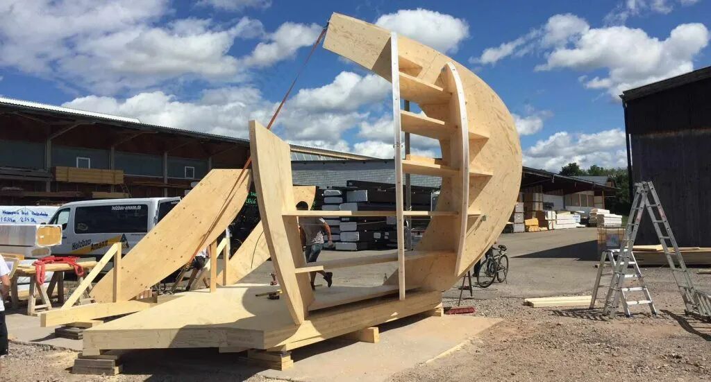 虽然建筑从外面看起来像一个封闭的外壳,但它的内部却因其轻巧的木结构,创造了大跨度的舒适空间,还可以用作大型书架使用。负责结构设计的Klaus Bollinger解释道:“该结构也可以解释为书架向空间形成结构的参数化转换。”