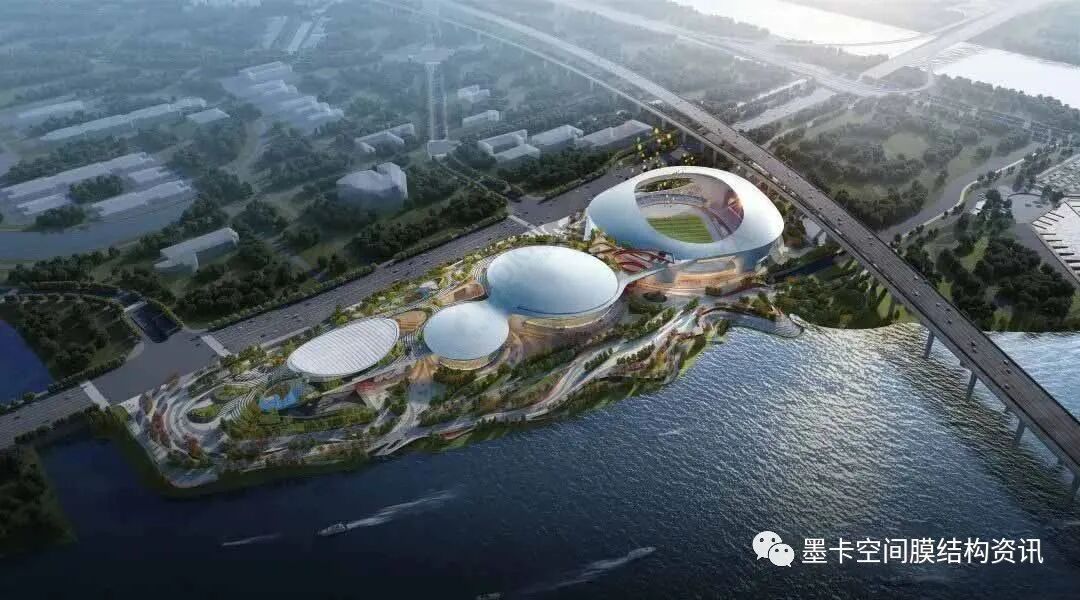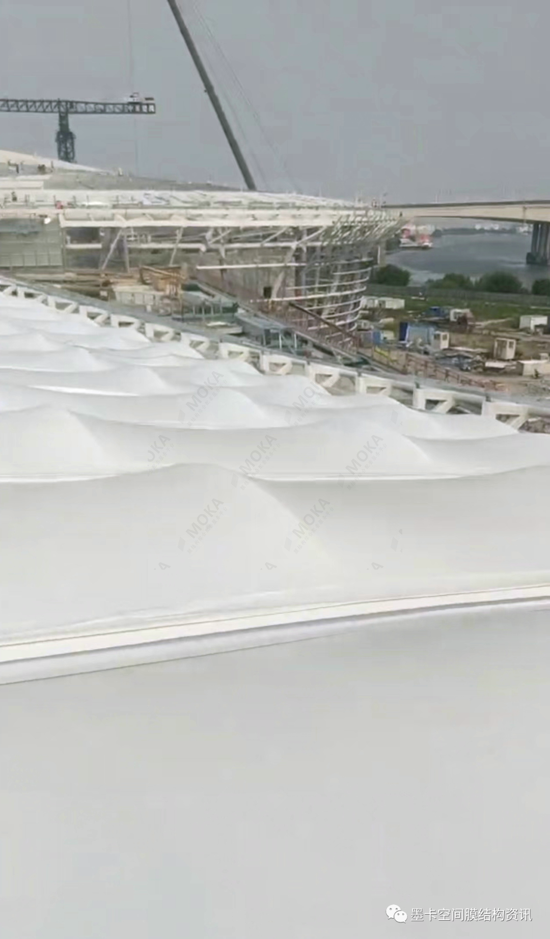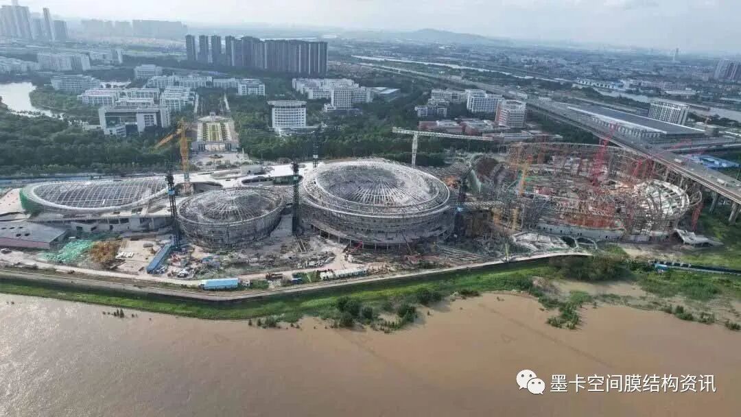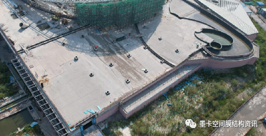 游泳馆于2021年7月首吊开工,9月成功合拢,目前正在进行膜结构的施工。