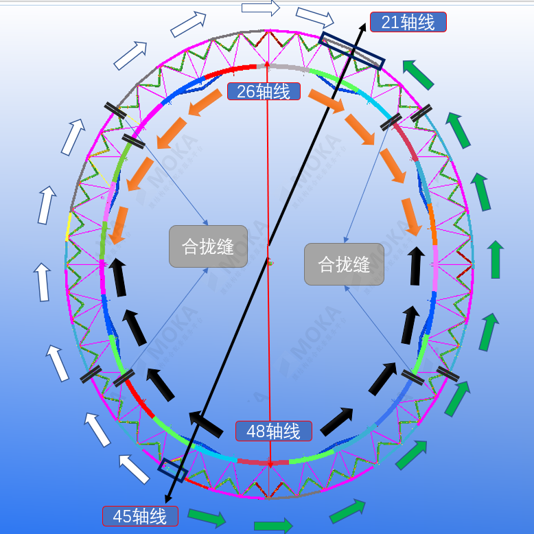 项目团队针对这一施工特点,加强每日定时测量与数据分析,同时设置合拢缝对构件进行临时固定,确保了安装定位的精度。