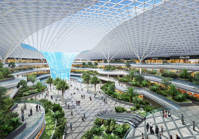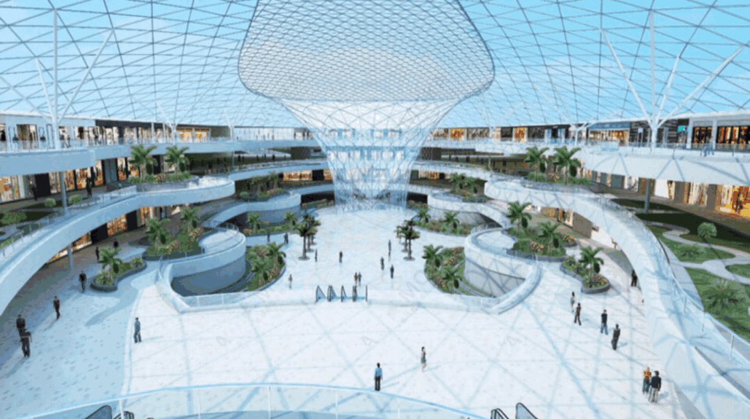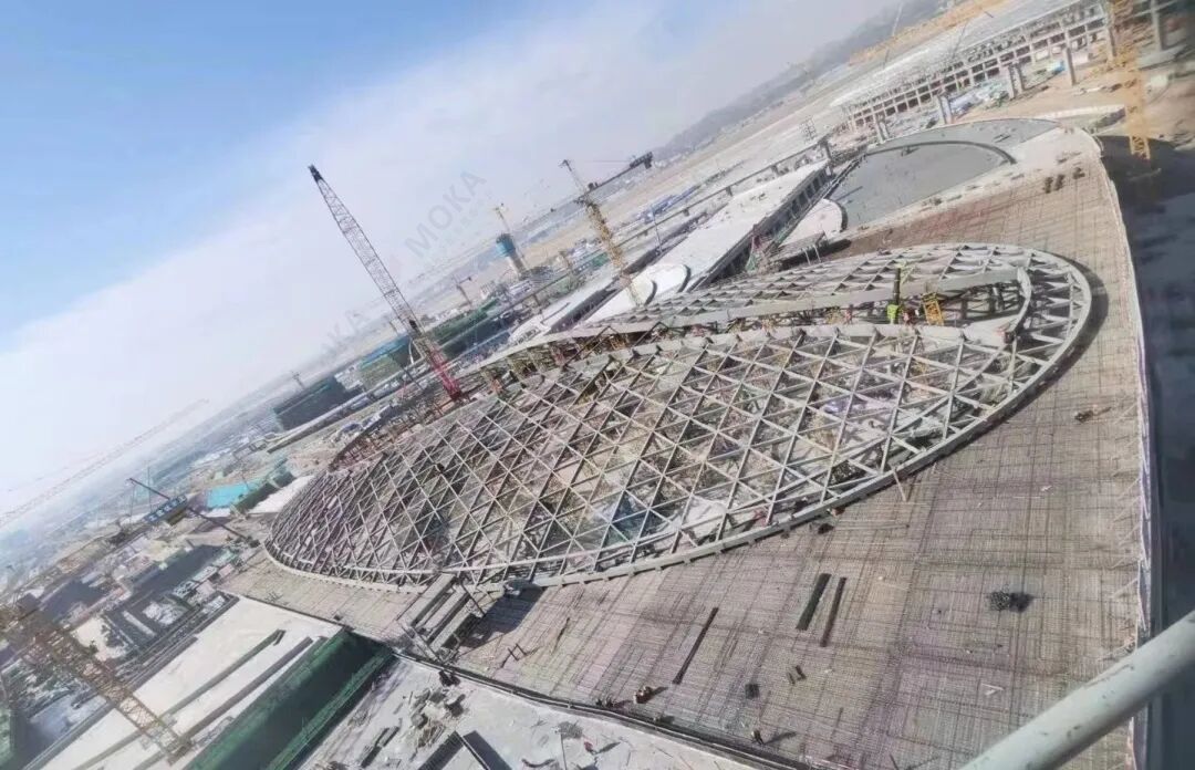 ▲大玻璃拼接“白玉盘”,轻盈环保