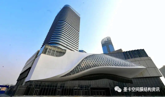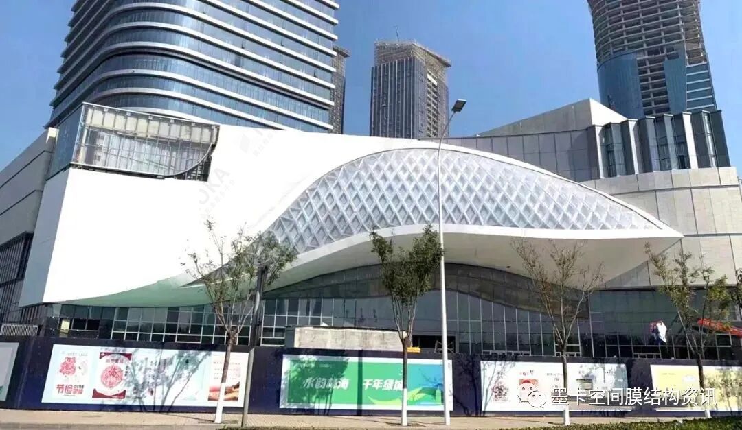 The eye of the canal is membrane structure of lighting curtain wall at the main entrance of Beijing GRAND CANAL PLACE shopping center of SINO-Ocean Group.Beijing GRAND CANAL PLACE shopping center is located at the North starting point of the Beijing Hangzhou Grand Canal in Tongzhou District, Beijing. The "eye" shaped design in front of the main entrance of the shopping center is called the "eye of the canal". The project is designed in the shape of sail, which is integrated into the canal complex, symbolizing "sailing and plain sailing".