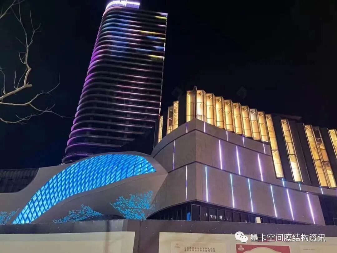 Through the comprehensive design of membrane materials and lighting, the project makes the day scene and night scene unique. The eye-catching shape and lighting effect make it a commercial landmark.